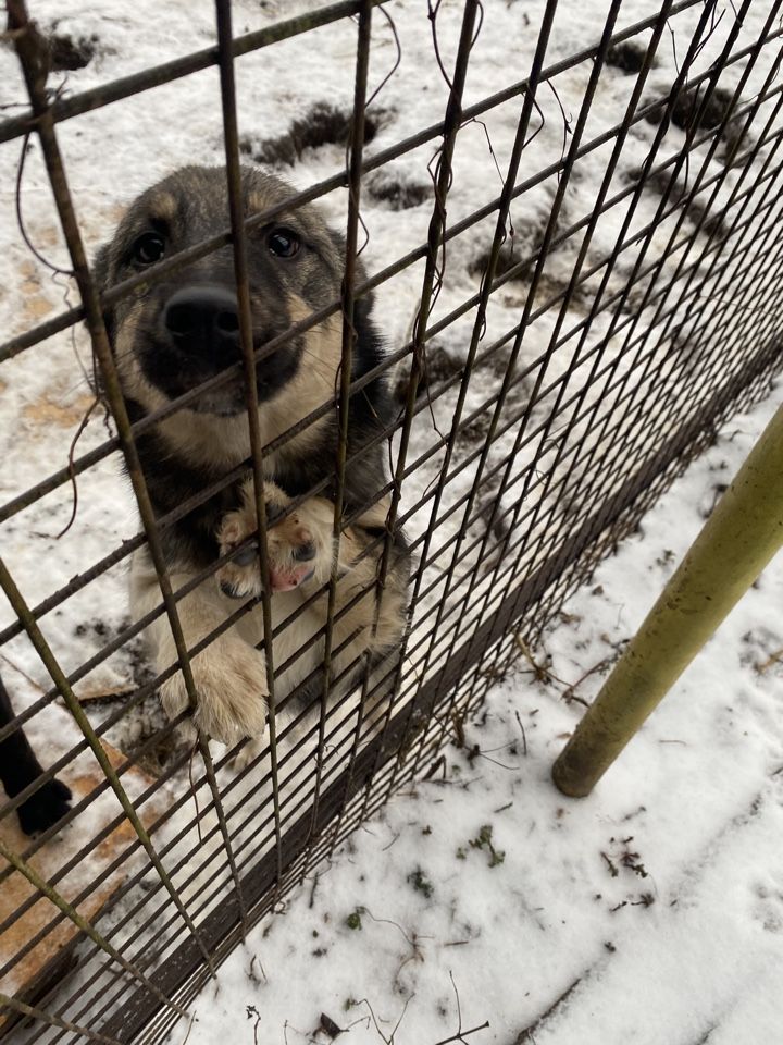 Собака, самка, окрас серо белый, возраст около 7 месяцев. Отловлена 24.11.2025 в районе ул Деминской