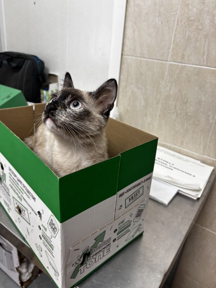 Кошка, самка, окрас пестрый, возраст около года, кличка Буся. Отловлена в районе Речного проезда 18.03.2026