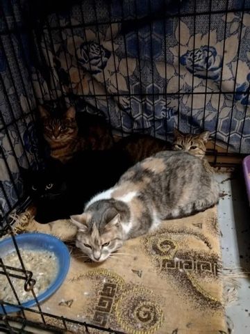 Кошки 4, самки, окрас разный (черная, трехцветная и 2 серые), возраст около 4-5 лет (не социализированы). Отловлены в районе ул Щемиловка 13.04.2026г